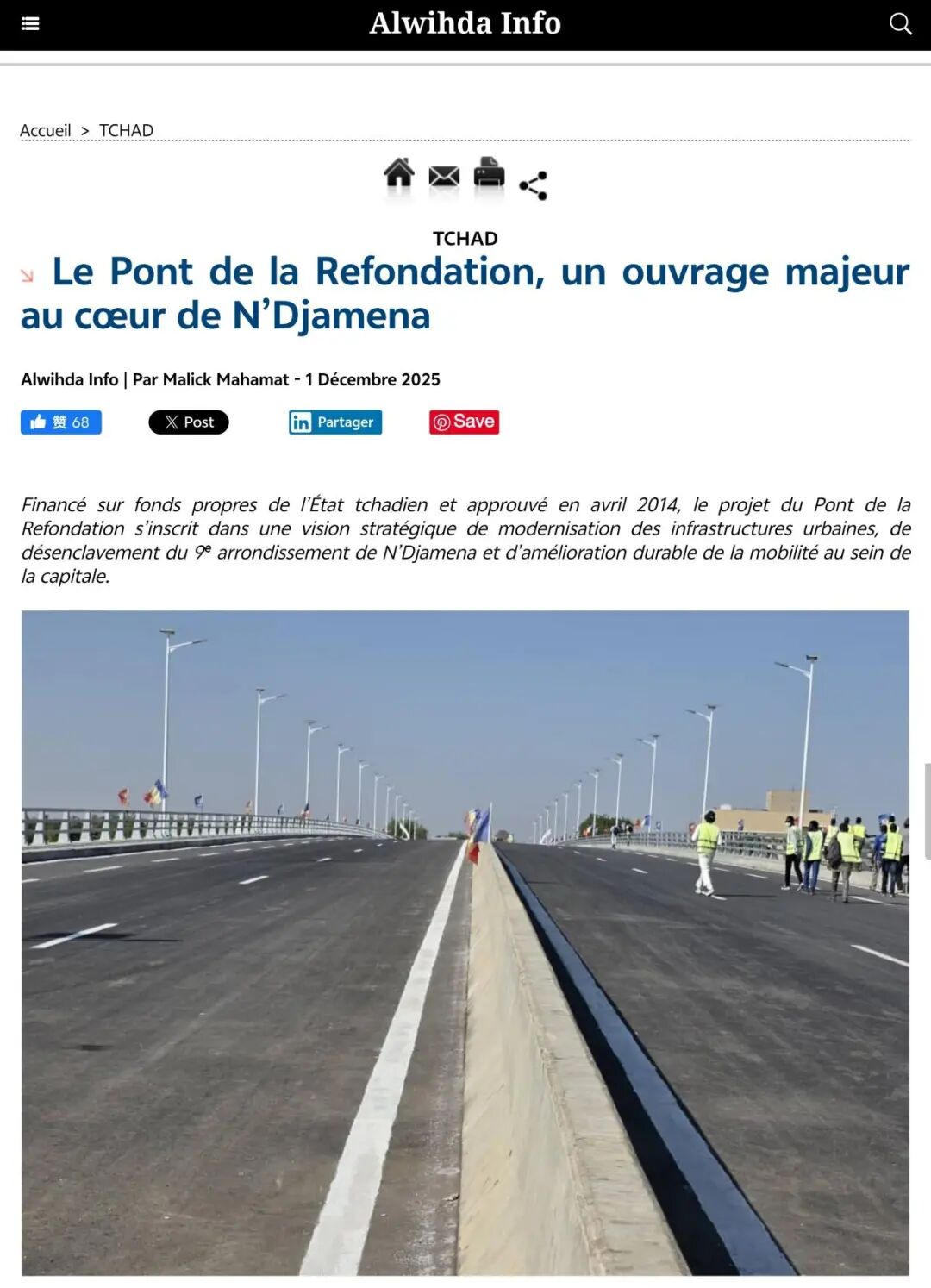 《乍得:首都恩贾梅纳第三座“重建之桥”落成》